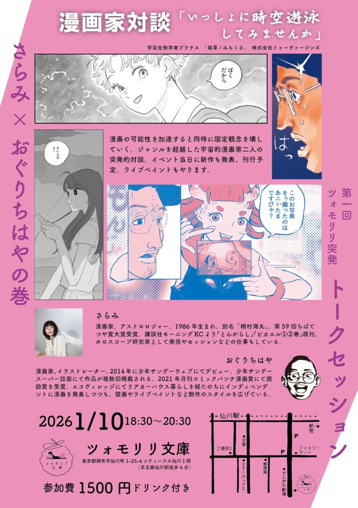 「そもそも、トークセッションで登壇するさらみ先生とおぐりちはや氏はどこかに接点があるのでしょうか?」